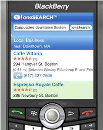 Yahoo! oneSearch voice is a great way to use your BlackBerry without having to type in search terms. Users press a button and verbalize what they're looking for. Say anything you would type in the search box, and get relevant results, delivered to your BlackBerry.